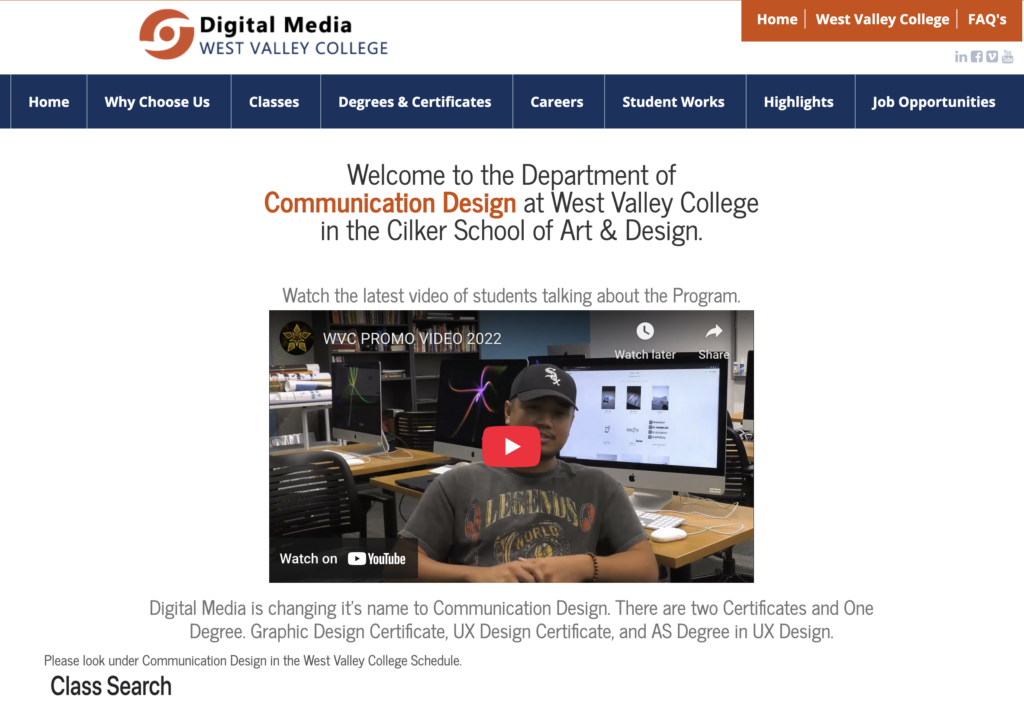 Today the program Jeff Rascov oversees is Communication Design. The program specializes in students learning skills in Graphic Design and UX Design. Students transfer to many of the local state schools.